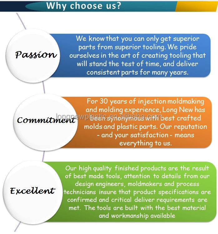 Main products | Among our main products are plastic parts or sub-assemblies for all kinds of home electrical appliances, stereos, printers, air conditioners, PC computers, LED TV, monitors, electronic products, pipe fitting, components and many others. |