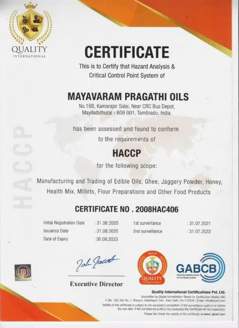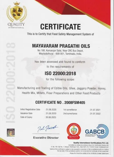 Pragathi Oils is focussed to give natural and hygienic products to humanity. Quality starts from raw material, manufacturing process employed and packing materials utilized, thus ensuring the best in quality and life of of the product retained.