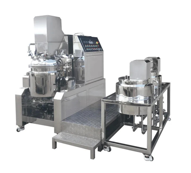 This machine consists of: oil tank, water tank, vacuum homogeneous emulsifying machine, heating system, mixing system, vacuum system, electric lifting system, operation control cabinet, piping system. It is the most suitable equipment to produce high-grade skin care creams or other creams products. Vacuum Homogenizer: Made for the setting. The
