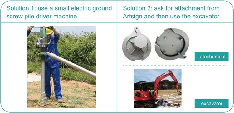 Ground screw with special holes in head | Ground screw welded with square fange | Ground screw with separated spiral blades | Ground screw with continous spiral blades |