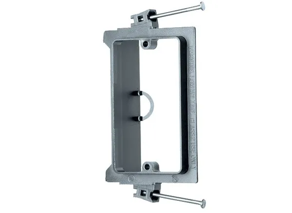 Low Voltage mounting bracket features shallow mounting depth which allows for more wires to be run in the wall cavities. The shallow mounting depth also works better with reversible wall plates since the box itself is not obstructing the wire passage. Has also designed their new construction brackets to have a front nail flange as well as a full outer flange