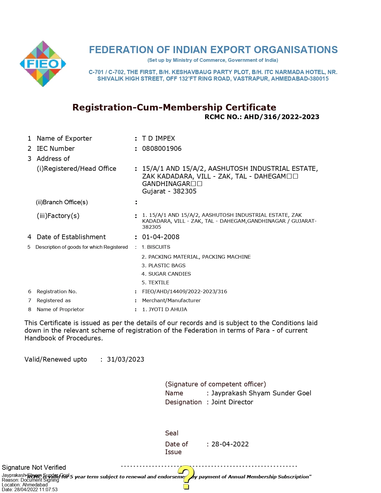 Company established since 1998 having Manufacturing / Export experience since 20-Years.