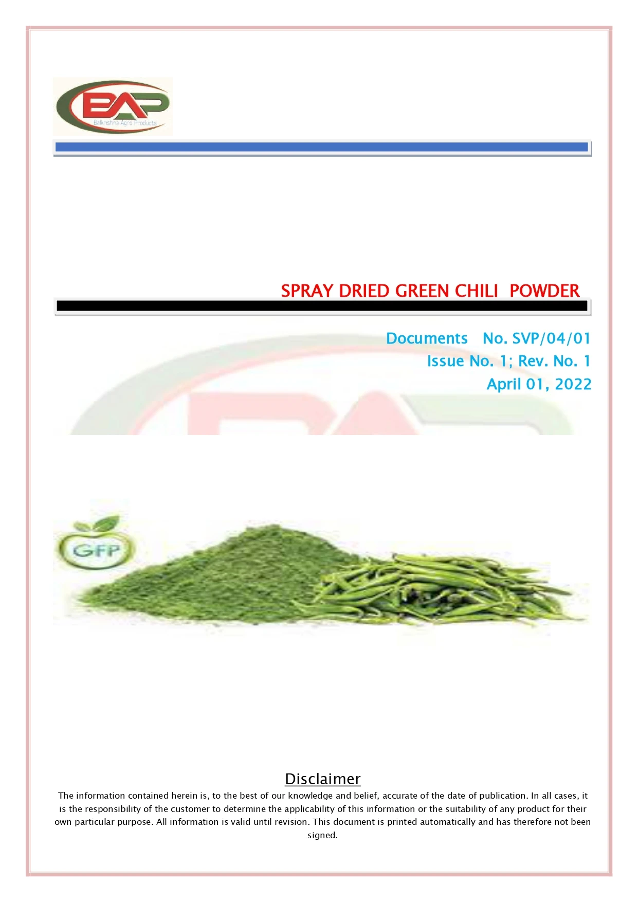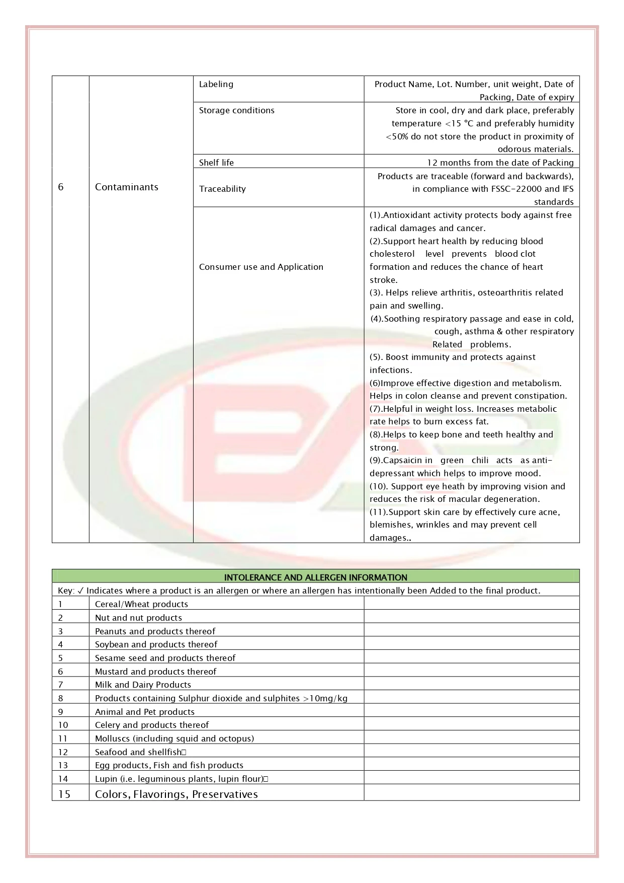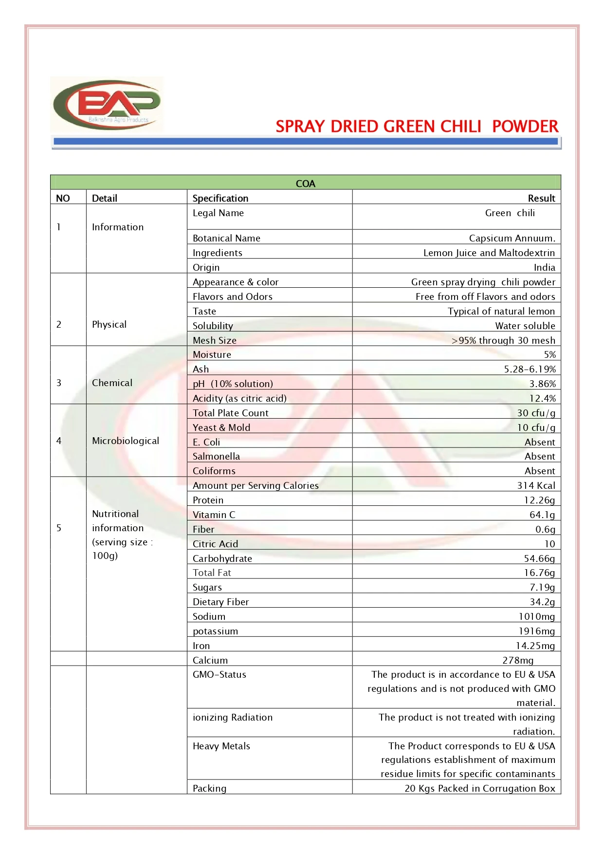 Ingredients | Spray Dried Green chilli Extract |