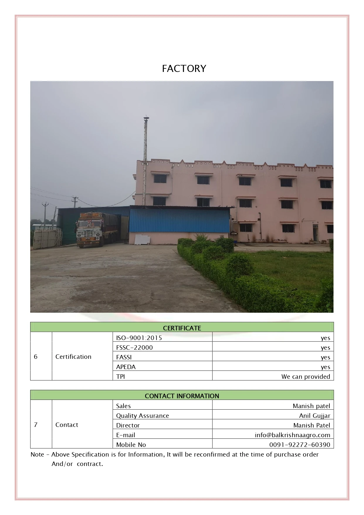 Shelf Life | 12 months from the date of Packing |