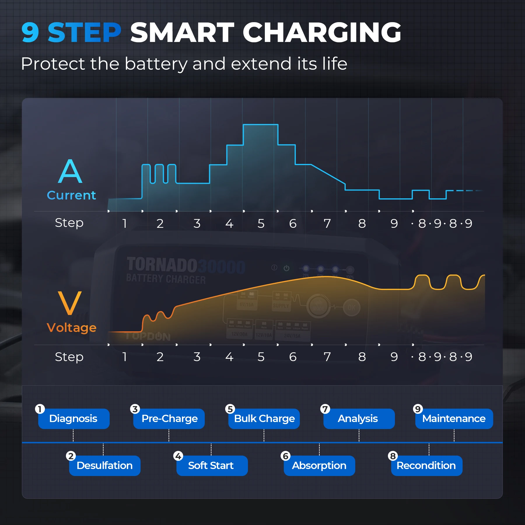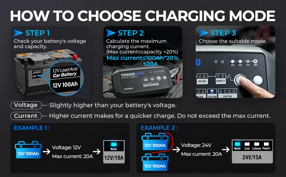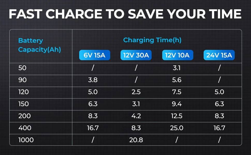 Applicable Batteries | 50-1000Ah | Battery Chemistries | Wet, Gel, MF, EFB, AGM,Lithium |