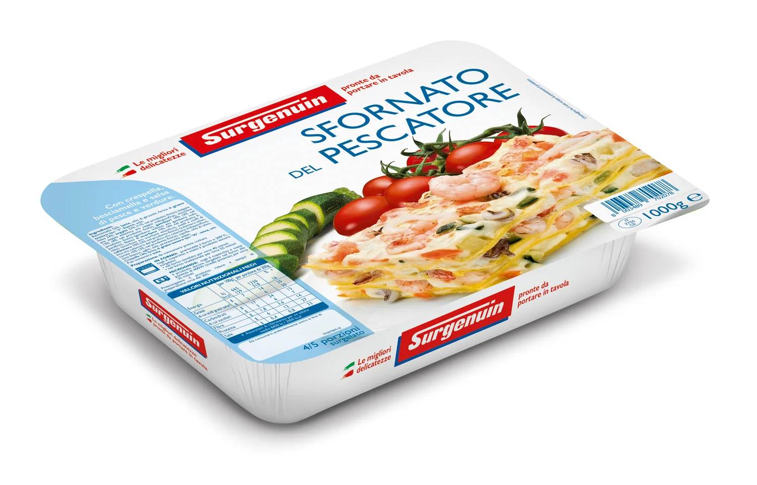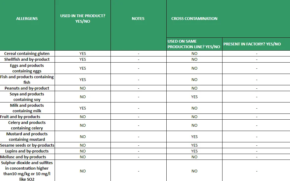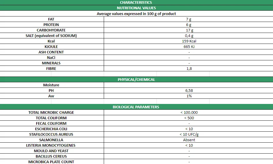 Bechamel sauce 52%: milk, sunflower oil, soft wheat flour type “0”, butter, salt. Sauce 34%: cuttlefish (cuttlefish and/or