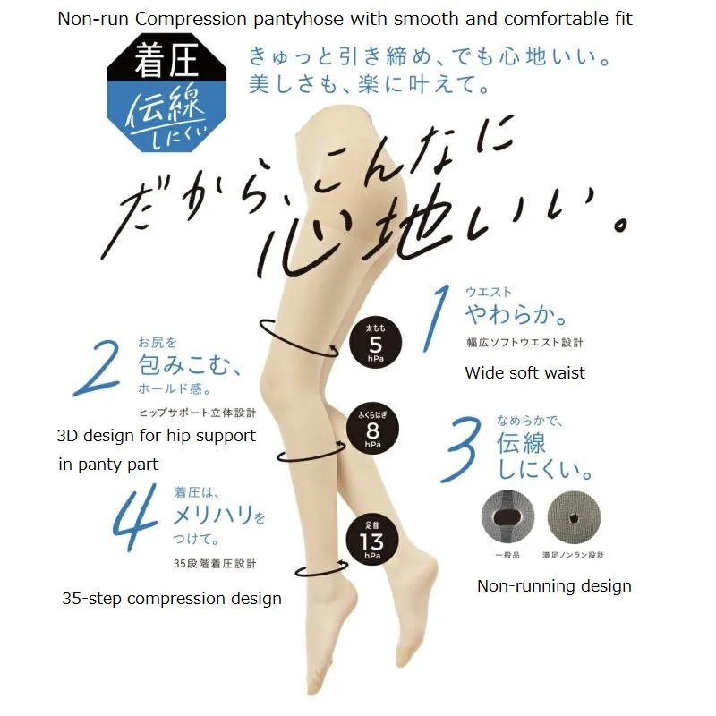 Pantyhose, plain fabric, SCY zokki(3D), non-running design that does not easily run, wide soft waist, panty part hip support 3D design, gusset, with name, foot shape press, reinforced toes, anti-bacterial and anti-odor, anti-static finishing, graduated compression design (13hPa at ankle)