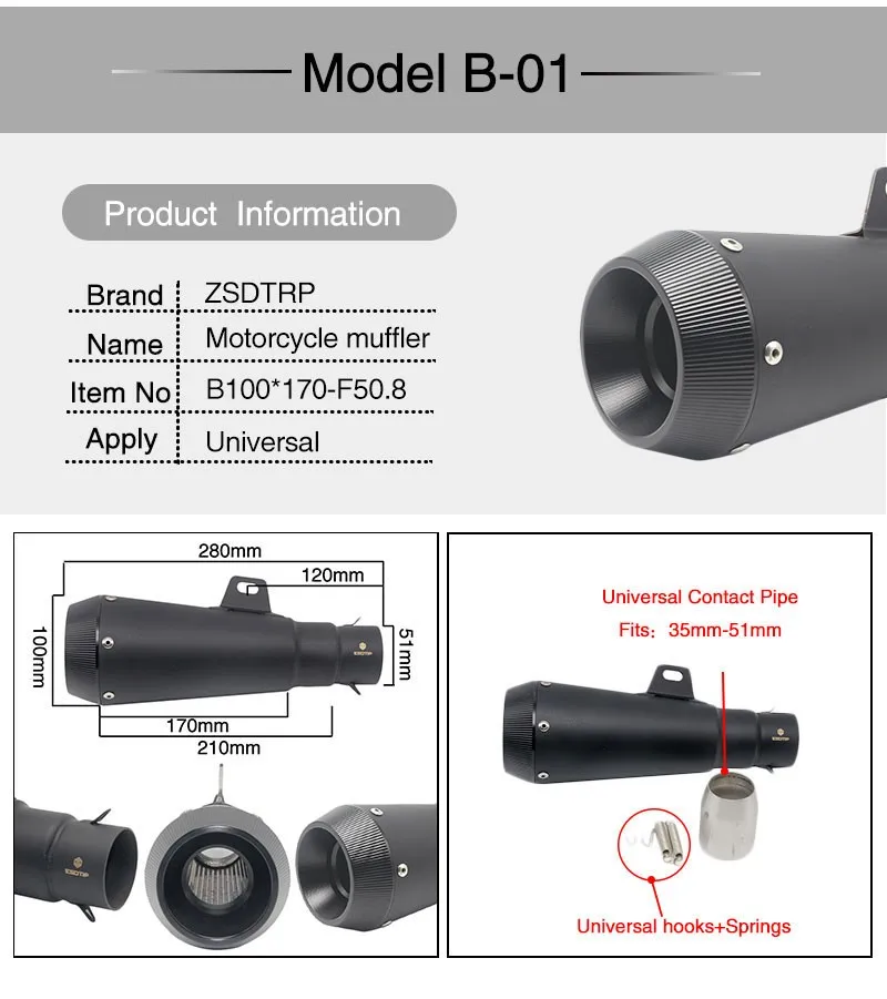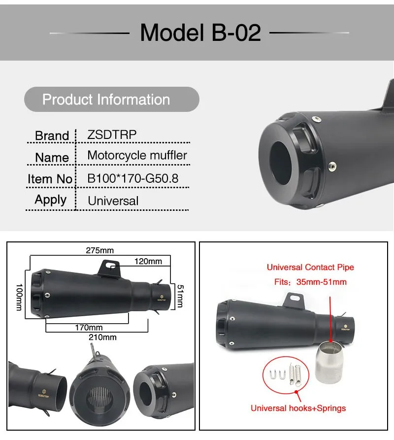 Scl-2018030036 черный Производительность мотоциклетный труба выхлопа глушитель