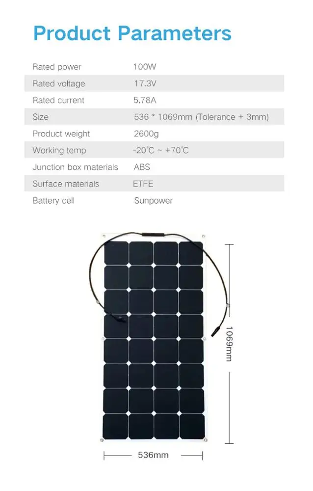 100 W Flexible Foldable ETFE Solar Panel Portable IP67 Waterproof Solar Panel