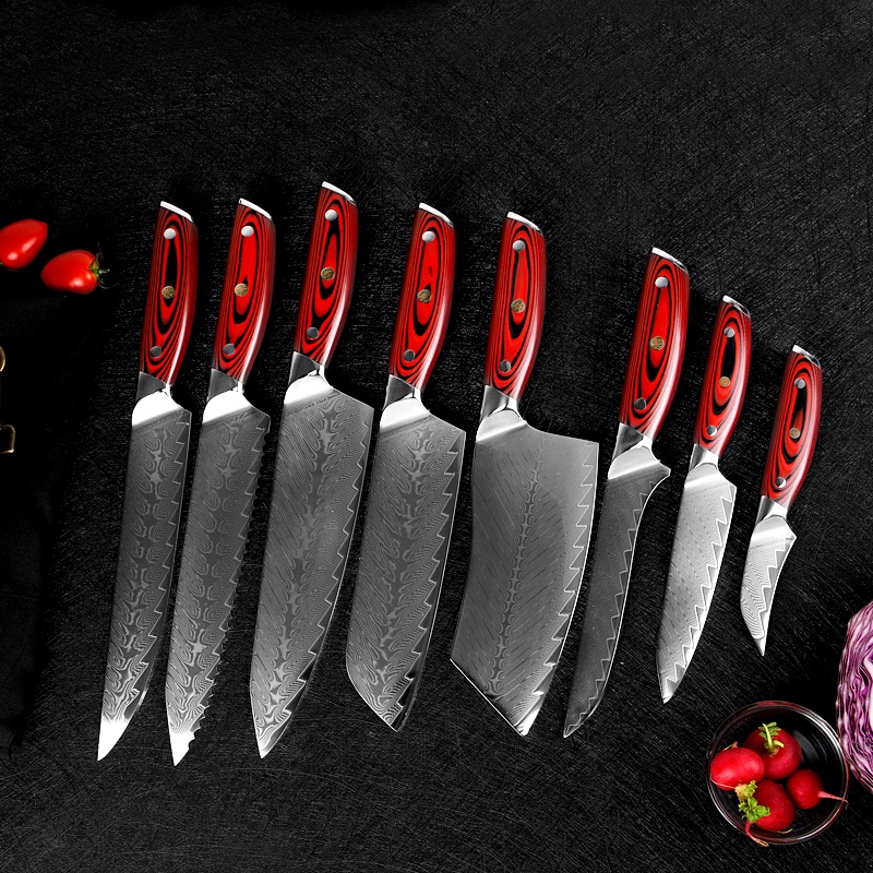Профессиональные инструменты для приготовления пищи от производителя, 8 шт., Ручка G10, универсальный нож сантоку из дамасской стали, набор кухонных ножей US $13.50-$194.80