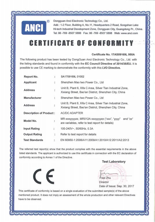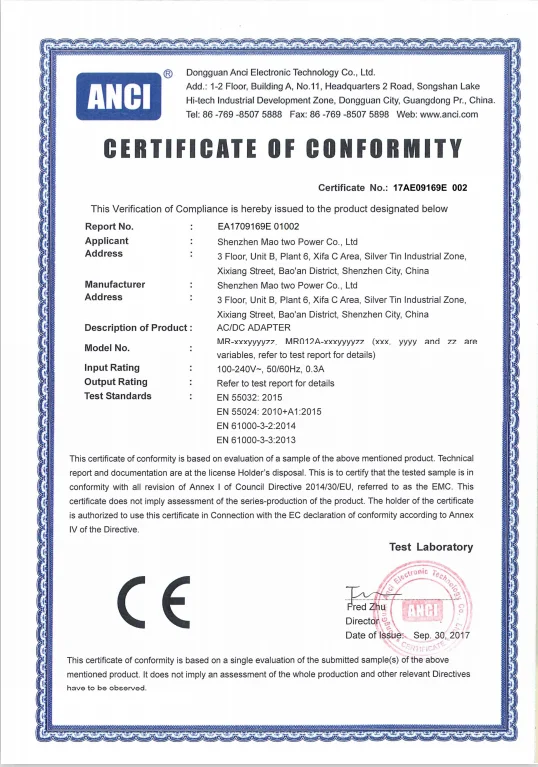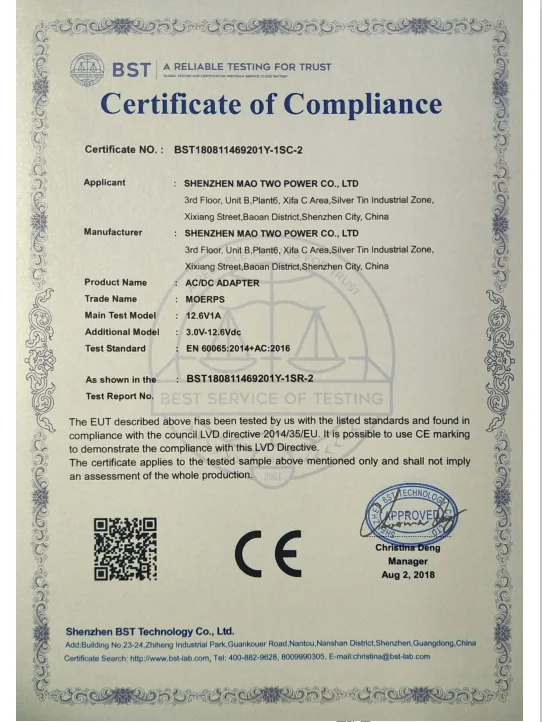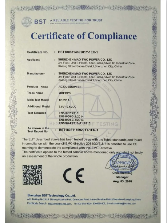 Also, we will offer you more necessary experience for free. For example,a.If your product working current is 1A ,we suggest you to use 12v 1.5A model ,so the adapter can keep good working status and long life ,and the working temperature is very low ,the 12v 1.5A adapter's price is nearby with 12v 1A .b. If your product belong to medical device ,the quality standard should be IEC 60601
