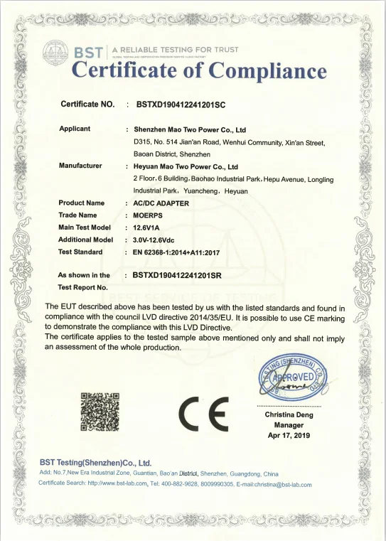 Answer : Our products have completely been approved UL,cUL,FCC,CCC,GS,CB,CE,TUV,SAA,KC,ROHS,PSE,etc. In order to make you fully understood the quality of our products,we would provide you with related certifications on your request.