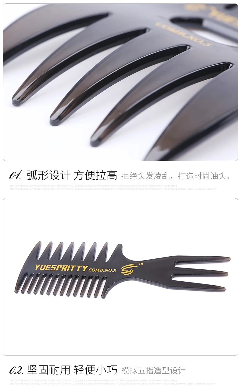 Super Salon anti static double side curly Men retro oil head styling comb personalized hair wide tooth comb barber comb set