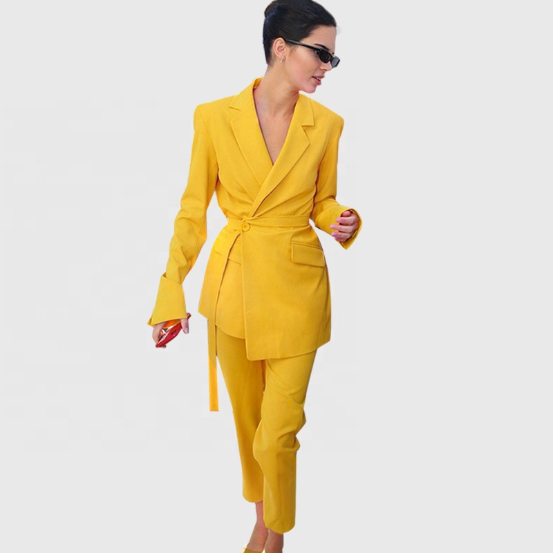 Женский офисный костюм-Блейзер, элегантный желтый вечерний подиумный брючный костюм знаменитости US $23.50-$37.50