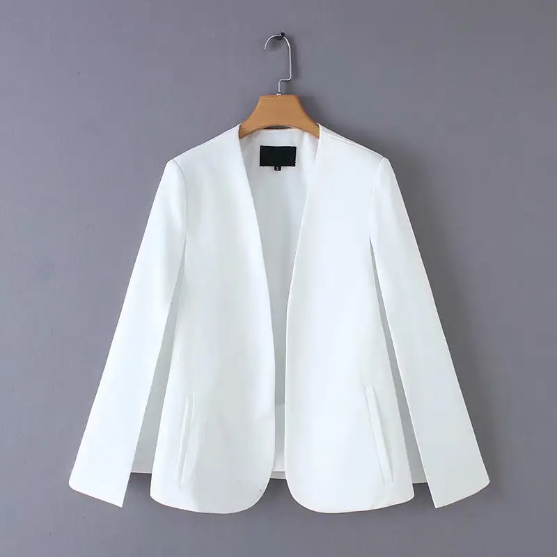 Блейзер Женский с V-образным вырезом, элегантная верхняя одежда для офиса, повседневный шикарный топ с открытым стежком, черный и белый цвета, Y11936 US $8.10-$9.90