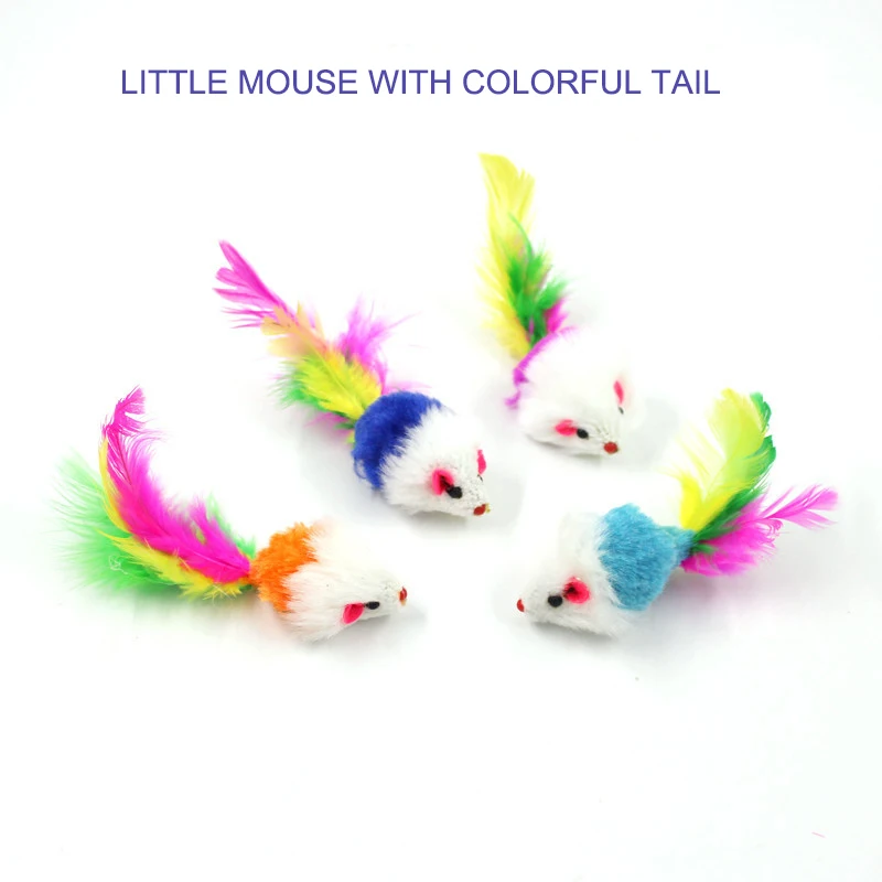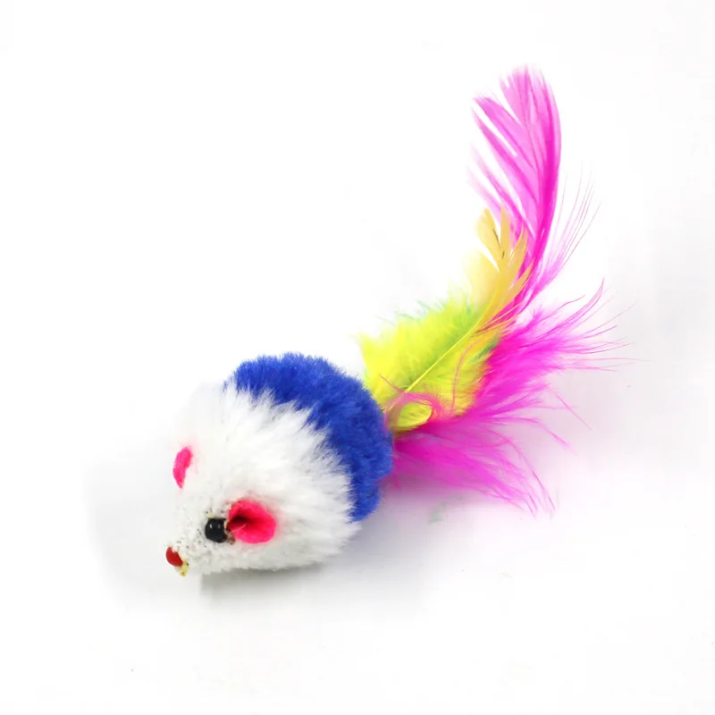 Накладная мышь игрушки для домашних животных кошек забавная мини-игрушка с красочным хвостом из перьев плюшевая