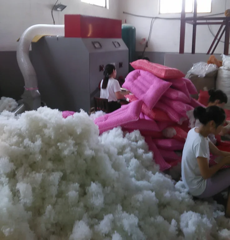 1: the machine has the function of automatic cotton feeding, filling and filling, it replaces the traditional manual cotton filling process, the efficiency is 30 times of manual. 2: the machine can keep the cotton after filling the original state of elasticity, soft and uniform full, excellent feel,beautiful appearance. 3: adopt the foot solid control switch, only need 4kg air pressure can quickly fill cotton, air consumption is 50% lower than similar products. 4: smooth transmission and stable performance. 5: no noise, low overall energy consumption, simple operation, safe production.