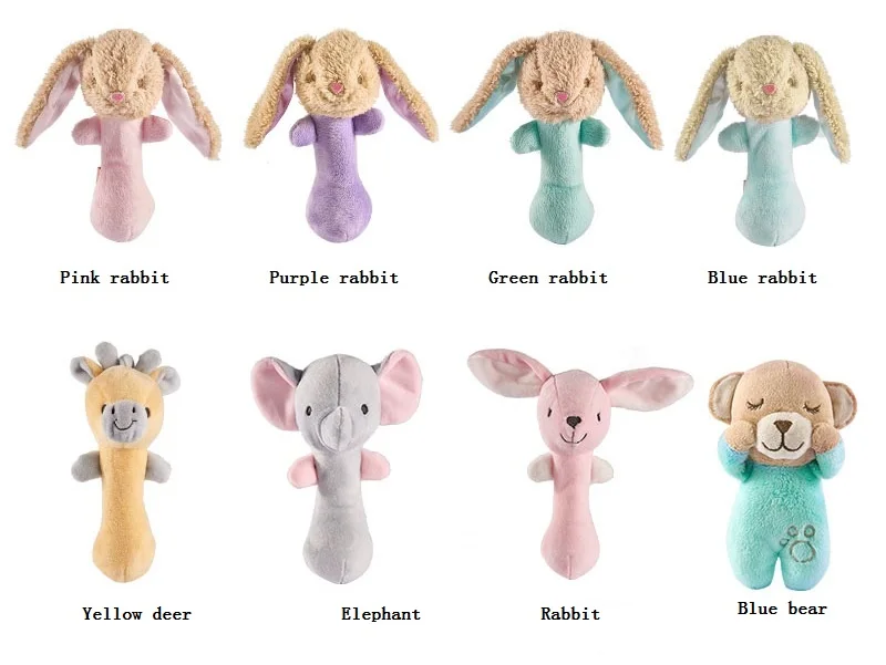 Product Description | Fashion custom cute soft plush toy high quality animal hand bells baby rattle plushtoy with sound |