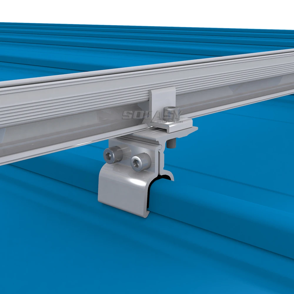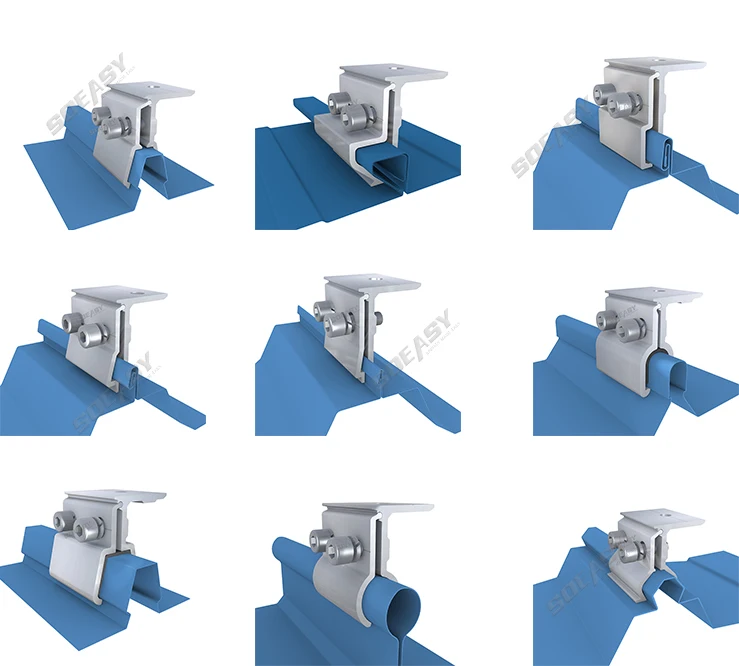 SOEASY METAL ROOF SOLUTION can be applied to the installation of solar PV power plant on metal sheet roof, such as KlipLock Roof, Standing Seaming Etc. Different roof types use special design clamps without damaging the roof, which can offer a more convenience, economic, and safe mounting solution for metal sheet solar PV power plant.