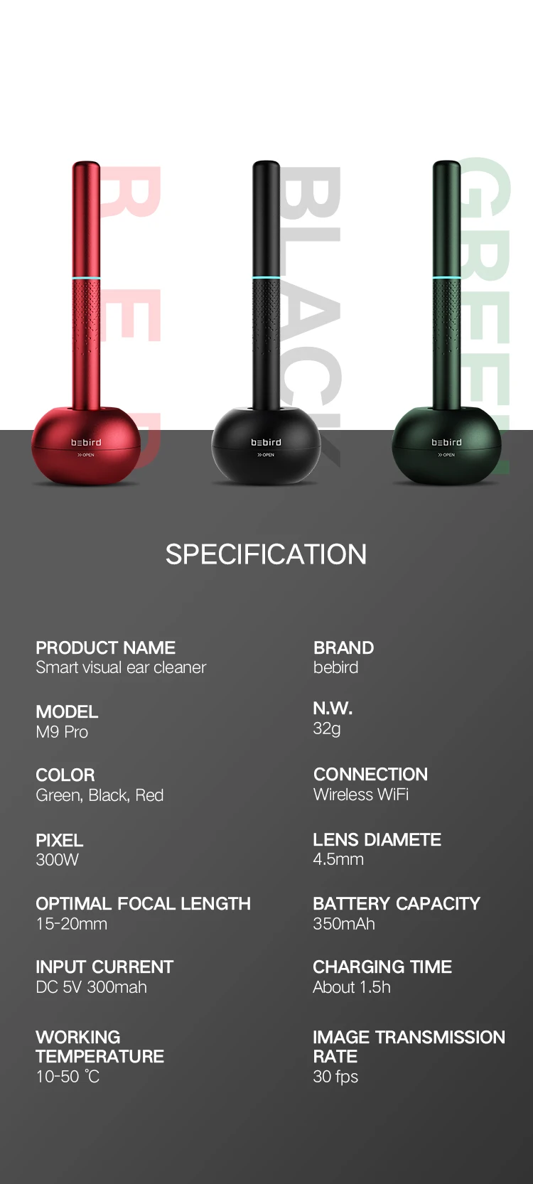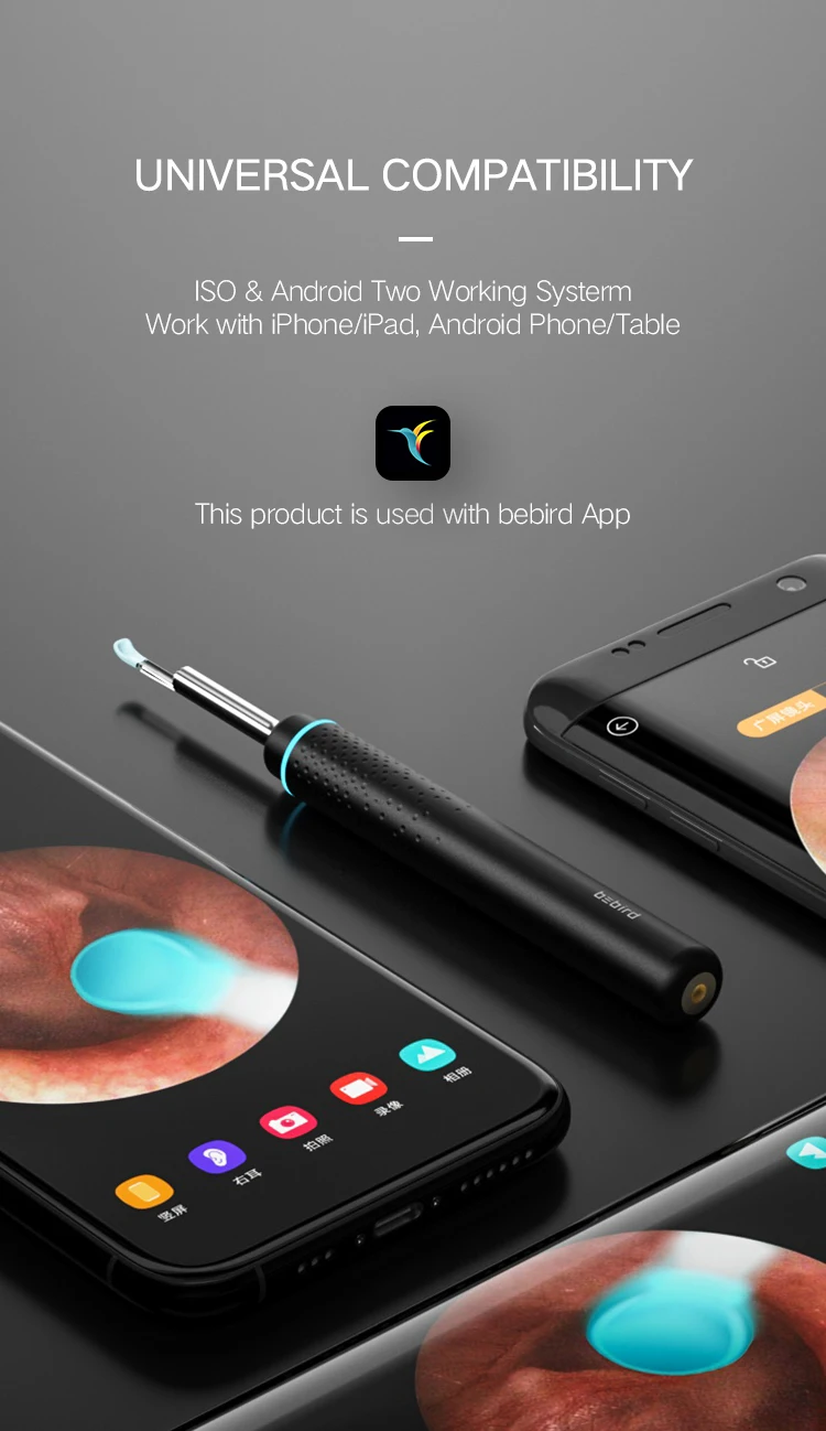 Bebird 2020 WIFI portable 300W veterinary endoscope medical ear cleaning tool otoscope endoscope | ||