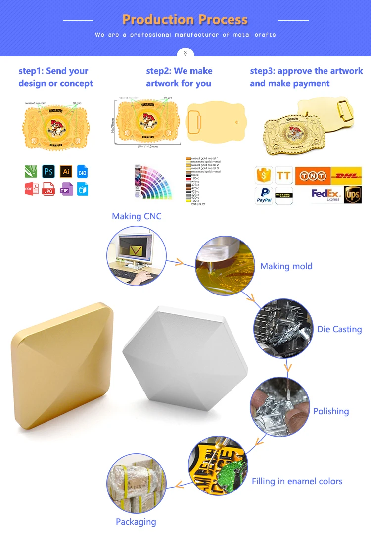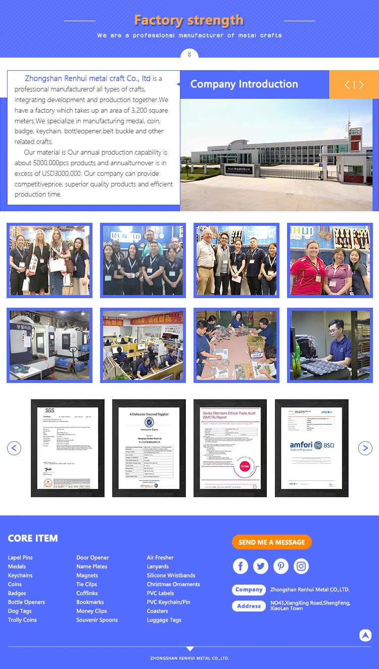Technics | 1. Process: Stamped or Die Casting. 2. Plating Color: Gold, Antique Bronze, Bronze,Matt Gold, Matt Silver, Antique Silver and etc. 3. Logo: Enamel, Paint, Paint with Epoxy, Embossed, Laser, Silk Screen Prints. Our Professional, Your Satisfaction. |