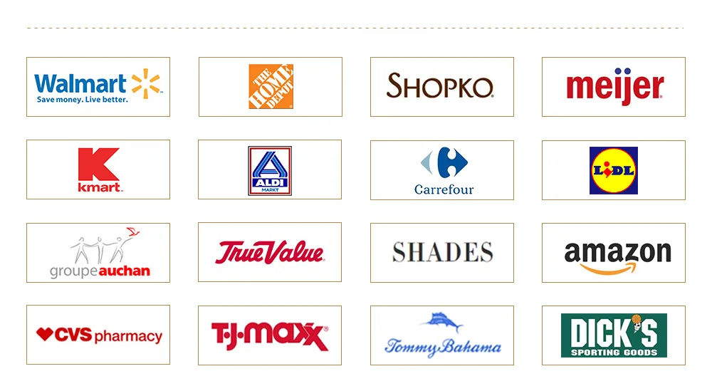 A:Walmart, ome Depot, Albertson, BJ's.