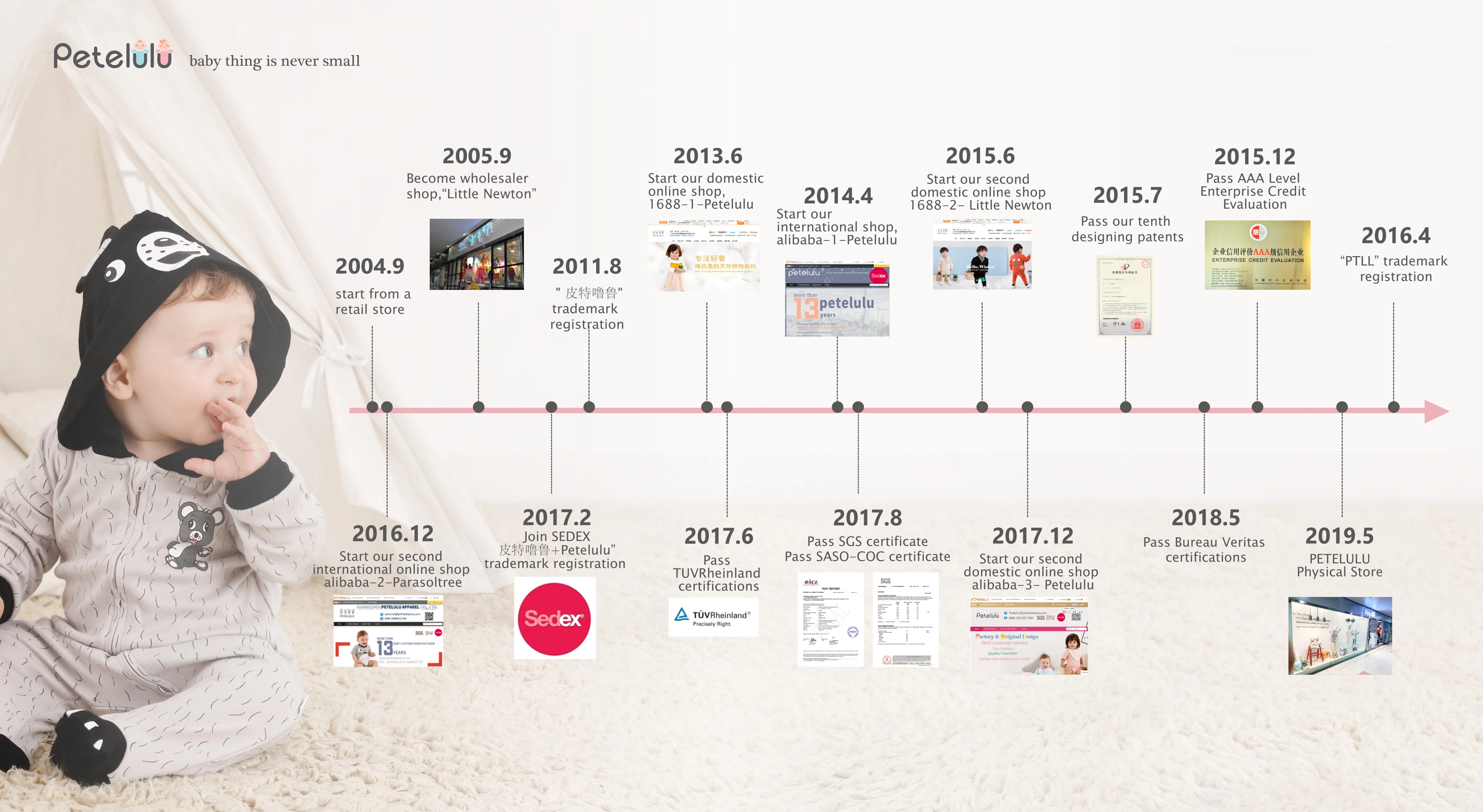 Guangzhou PETELULU co.,ltd,founded in 2004,is a professional manufacturer of baby and children's clothing,the main product