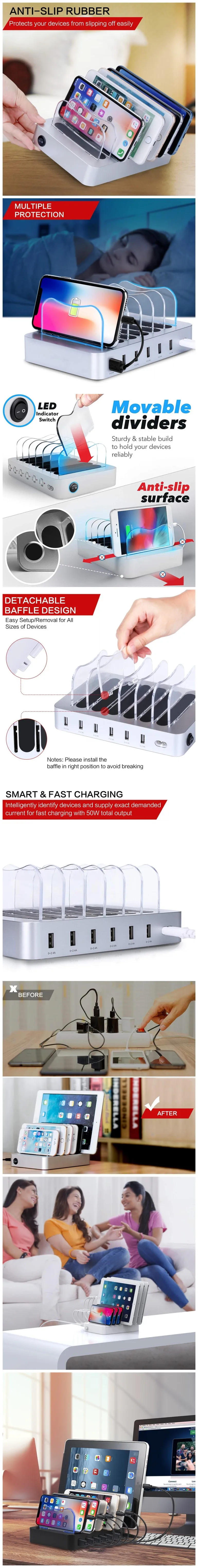 Name | Original factory 6 ports 50W 10A usb charger desktop USB Charging Station Dock for Hercules Tuff for multi devices |
