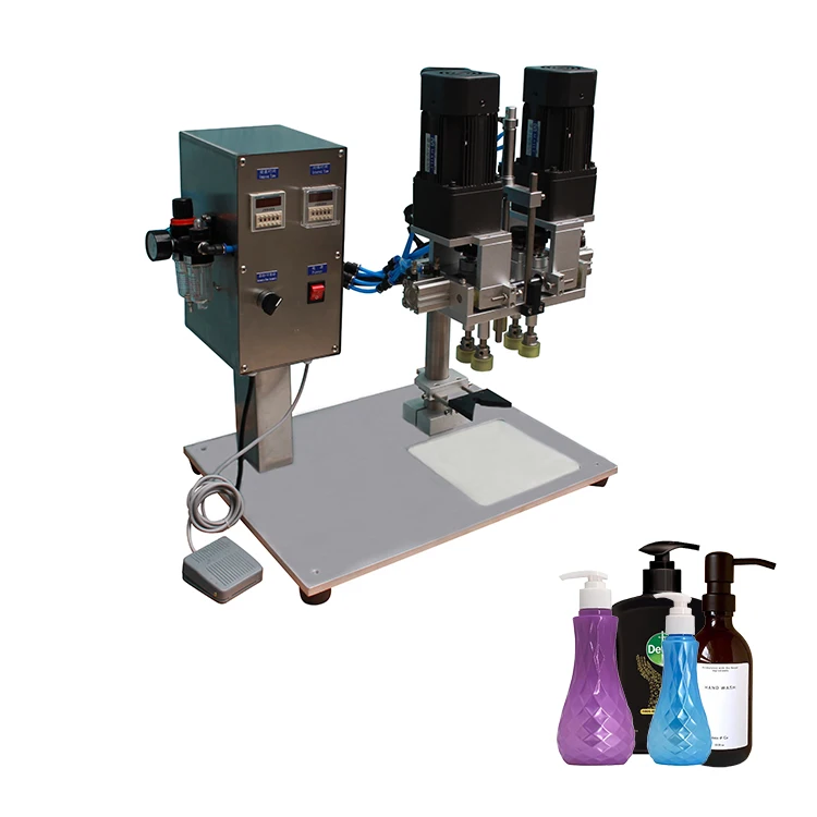 This machine used for a variety of daily chemical, medicine, lock different caps of chemical industry of nozzle, pump head, spray pump and hand spray gun. Controlled by electrical power, good stability, and solve the problem that it is difficult to lock nozzle, pump head, spray fog pumps, hand-button caps. It equipped with positioning devices, Capping standard, easy to operate, wide range of different shapes and sizes can be caps lock, it can lock different specification caps, speed and tightness adjustable.
