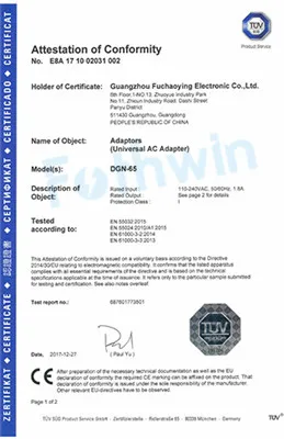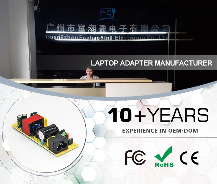 Guangzhou Fuchaoying Electronic Co., Ltd. was established in Guangzhou, China 2008. We are manufacturer of laptop adapters and tablet charges, AC/DC power supply with 5000 square meters factory, well-equipped testing equipment.