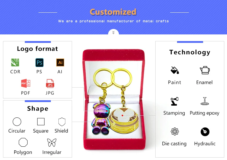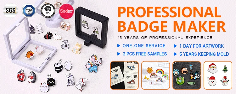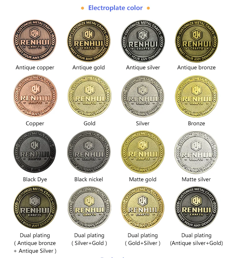 Technics | 1. Process: Stamped or Die Casting. 2. Plating Color: Gold, Antique Bronze, Bronze,Matt Gold, Matt Silver, Antique Silver and etc. 3. Logo: Enamel, Paint, Paint with Epoxy, Embossed, Laser, Silk Screen Prints. Our Professional, Your Satisfaction. |
