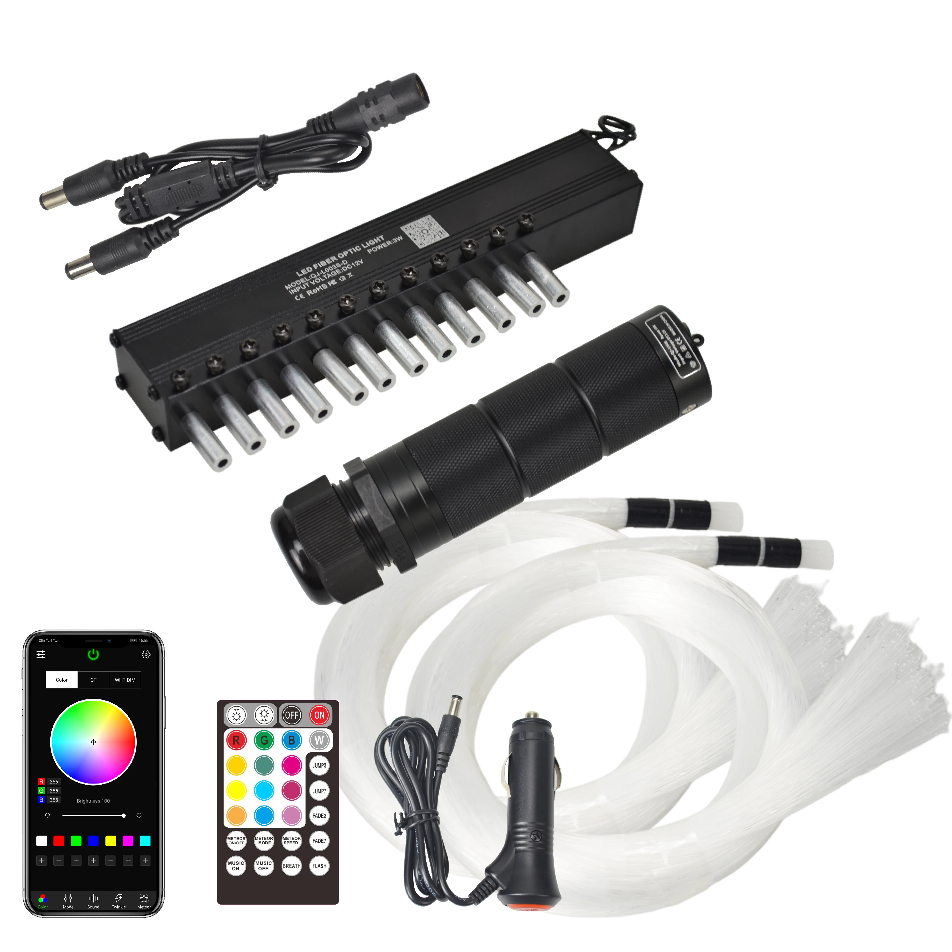 1.Fiber optic light is controlled by cellphone (Android / iPhone), just download the APP and turn on Bluetooth. Change
