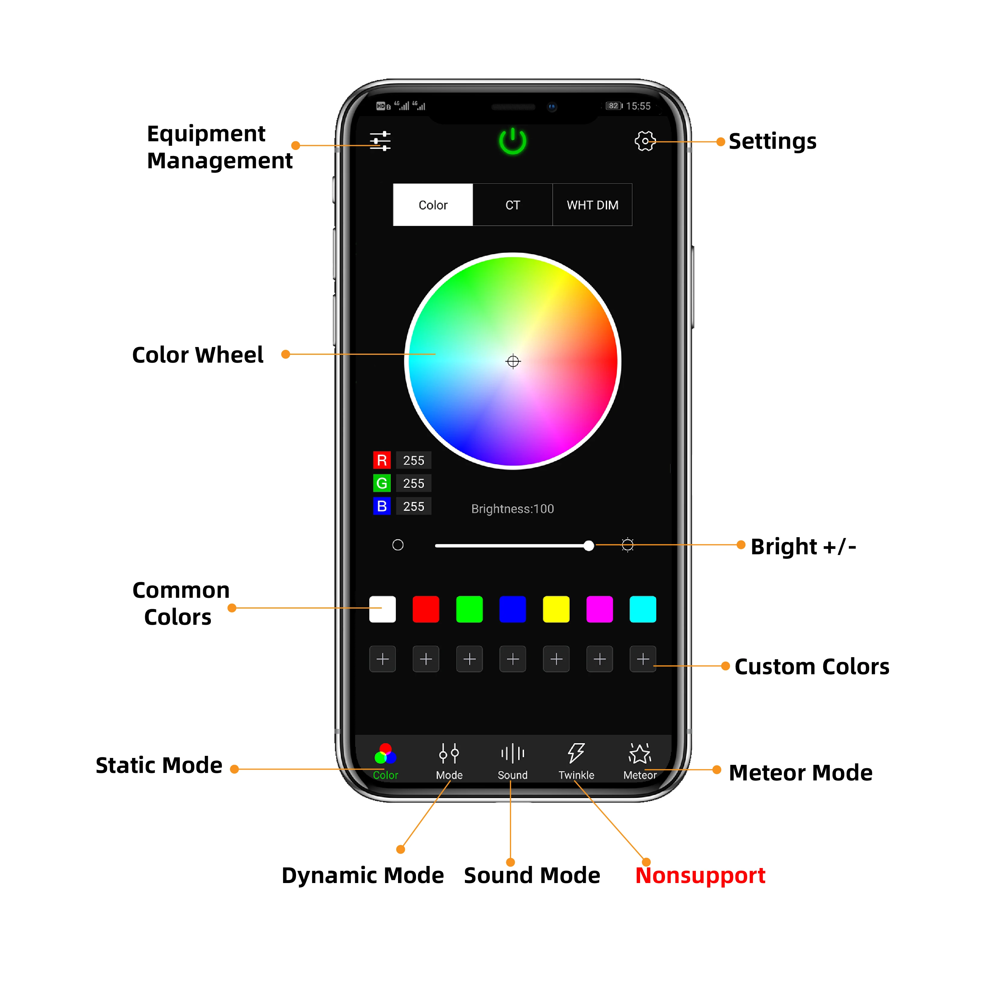 color/mode/speed/brightness conveniently, no worries about remote missed or broken. (Remote Included)