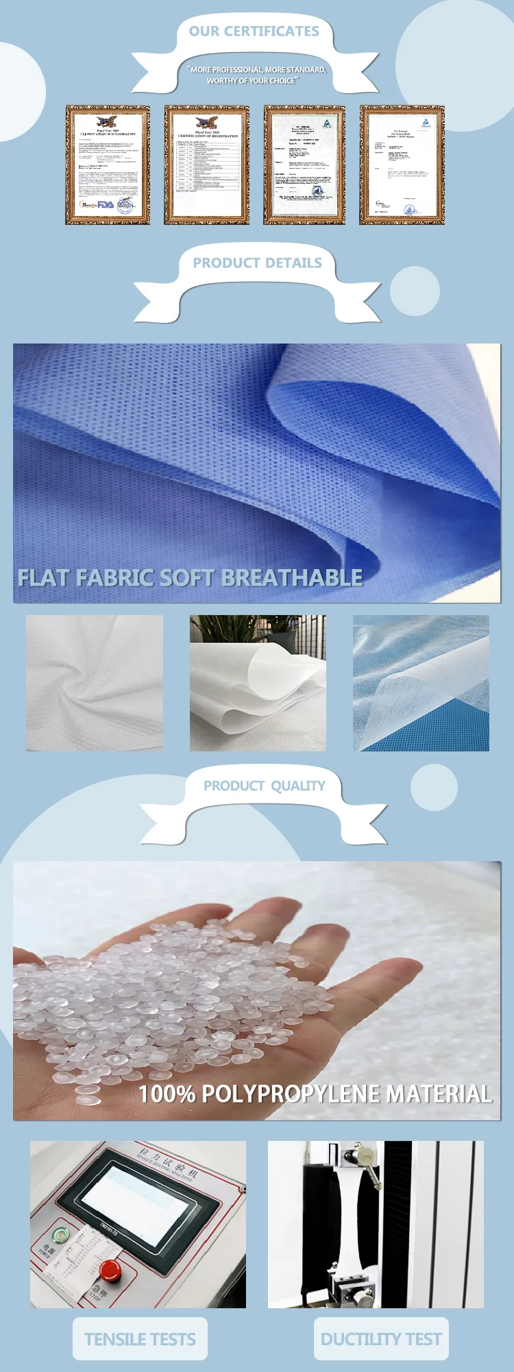products.The main products are:S/SS/SMS/SMMS non-woven fabrics,PP Spunbond non-woven fabrics,melt-blown non woven
