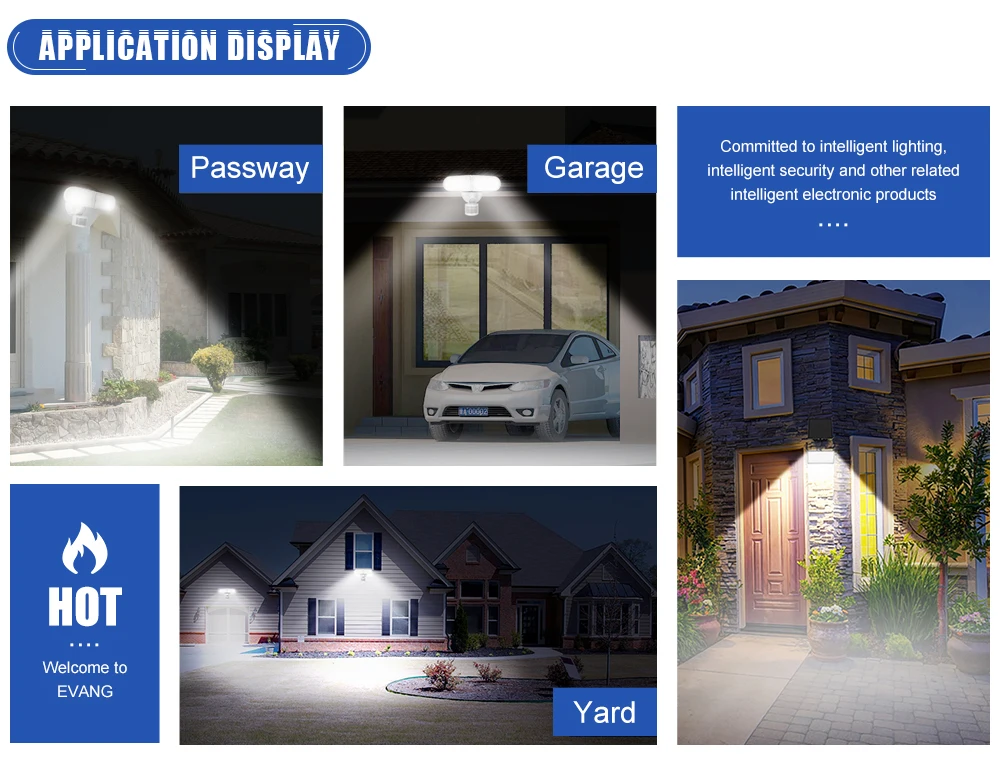 1.smart floodlight, smart camera, and smart alarm system rolled into 1 device 2. 2500 lumens and security control through app 3. Ability to view and record crisp and clear video at night with built-in starlight image sensor 4. Motion sensor truns light on automatically when motion isdetected and off after a preselected time dealy; 5.Integral photocell ensure lights are only activated with motion at nighttime. 6. Heavy duty die cast lamp head and PC housing perfect for wall or eave mount applications. 7. Adjustable motion sensor, up to 120° detect range. | |||