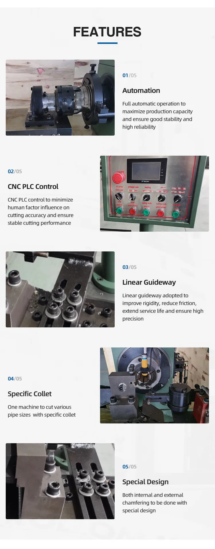 4. One machine to cut various pipe sizes (dia. 0-100mm) with specific collet