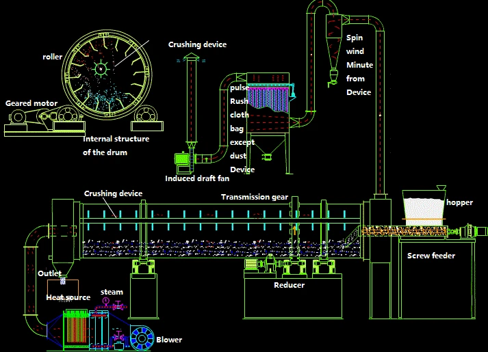 Applicable for drying big particles, heavy particles in chemical, mining, and metallurgy, such as mining area, cinder of blast furnace, coal, powder of metal, phosphate fertilizer and thiamine. For drying the powder or particles with special requirements, such as HP foaming blowing agent, residue of alcohol, light calcium carbonate, active clay, magnetic powder, graphite, and residue of medicine. For materials to be dried under low temperature and large lot continuous production .