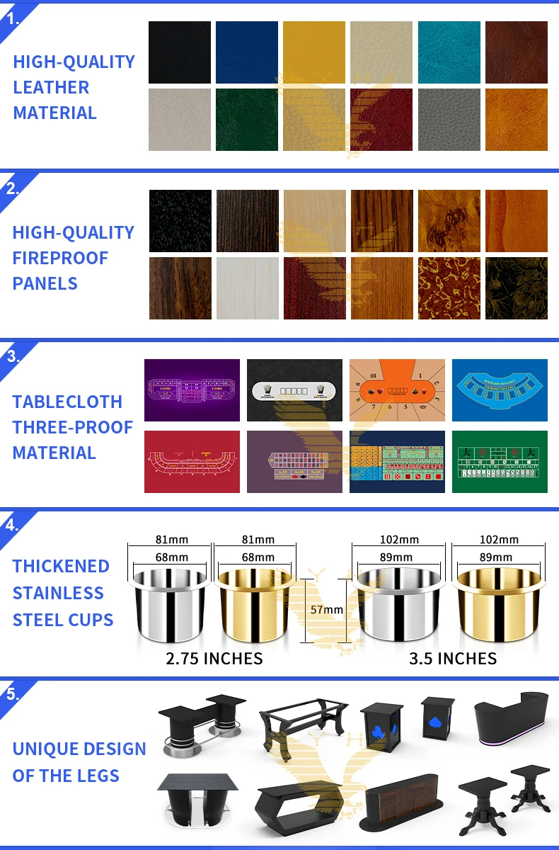Item | YH Factory Price 240cm Classics Texas Poker Table Customized Casino Texas Table With Stainless Steel Cylinder Legs | ||||||