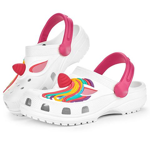 Горячая распродажа! Модная детская одежда для девочек пляжные сандалии; Нескользящая подошва; Нижнее белье с рисунком из мультфильма с подошвой из цельного дерева; Из водонепроницаемого материала EVA сабо детская обувь для сада