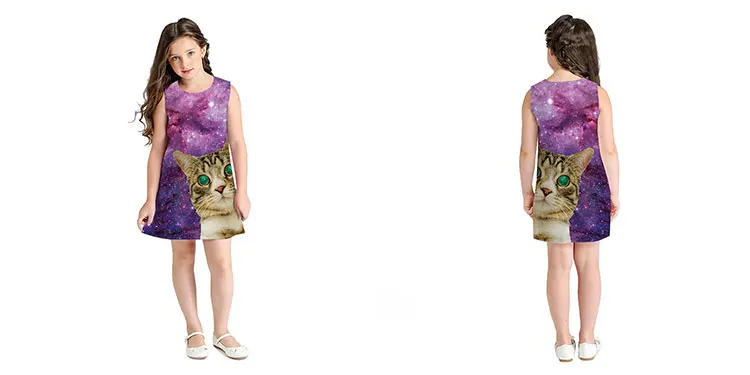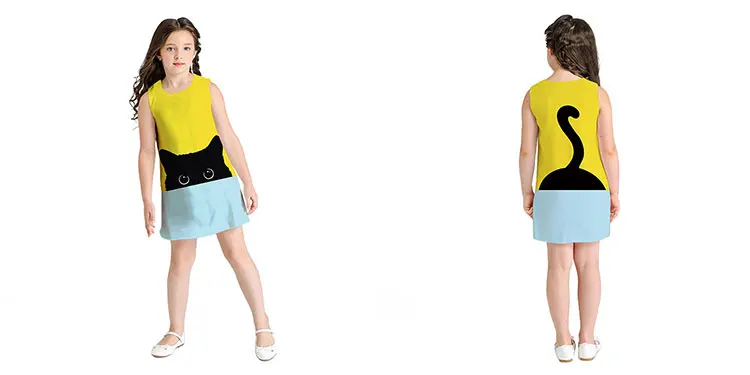 Лидер продаж, летняя новая повседневная детская одежда, платье без рукавов с круглым вырезом и цифровой печатью для девочек