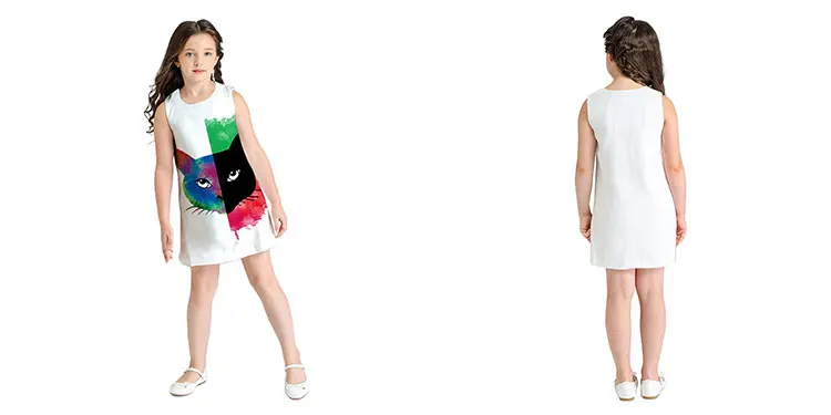 Hot sale summer new casual children clothes sleeveless round neck digital printing girls dress