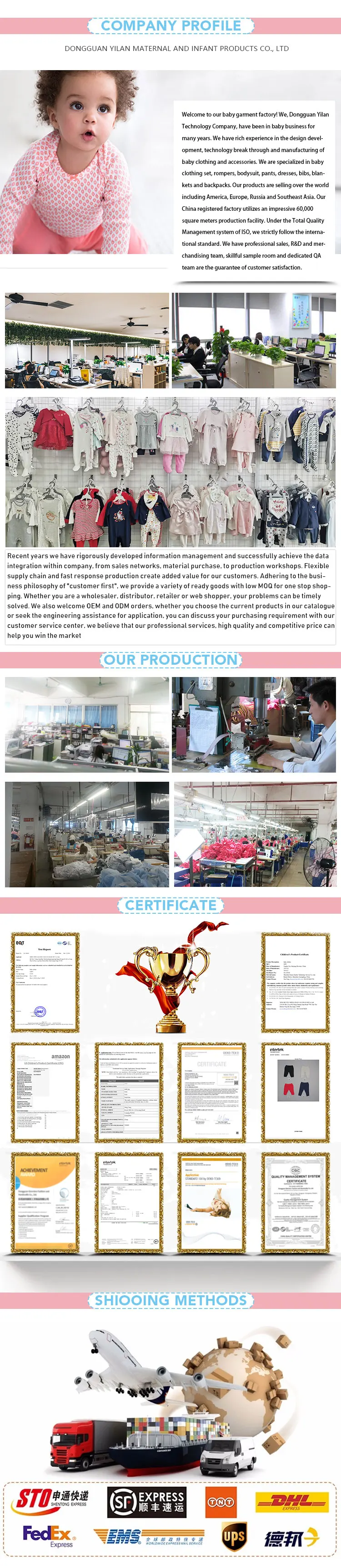 1.We specialize in manufacturing and exporting of baby clothes & children clothes for more than 10 years. Professional in OEM and ODM. strong sampling capability and quick response.