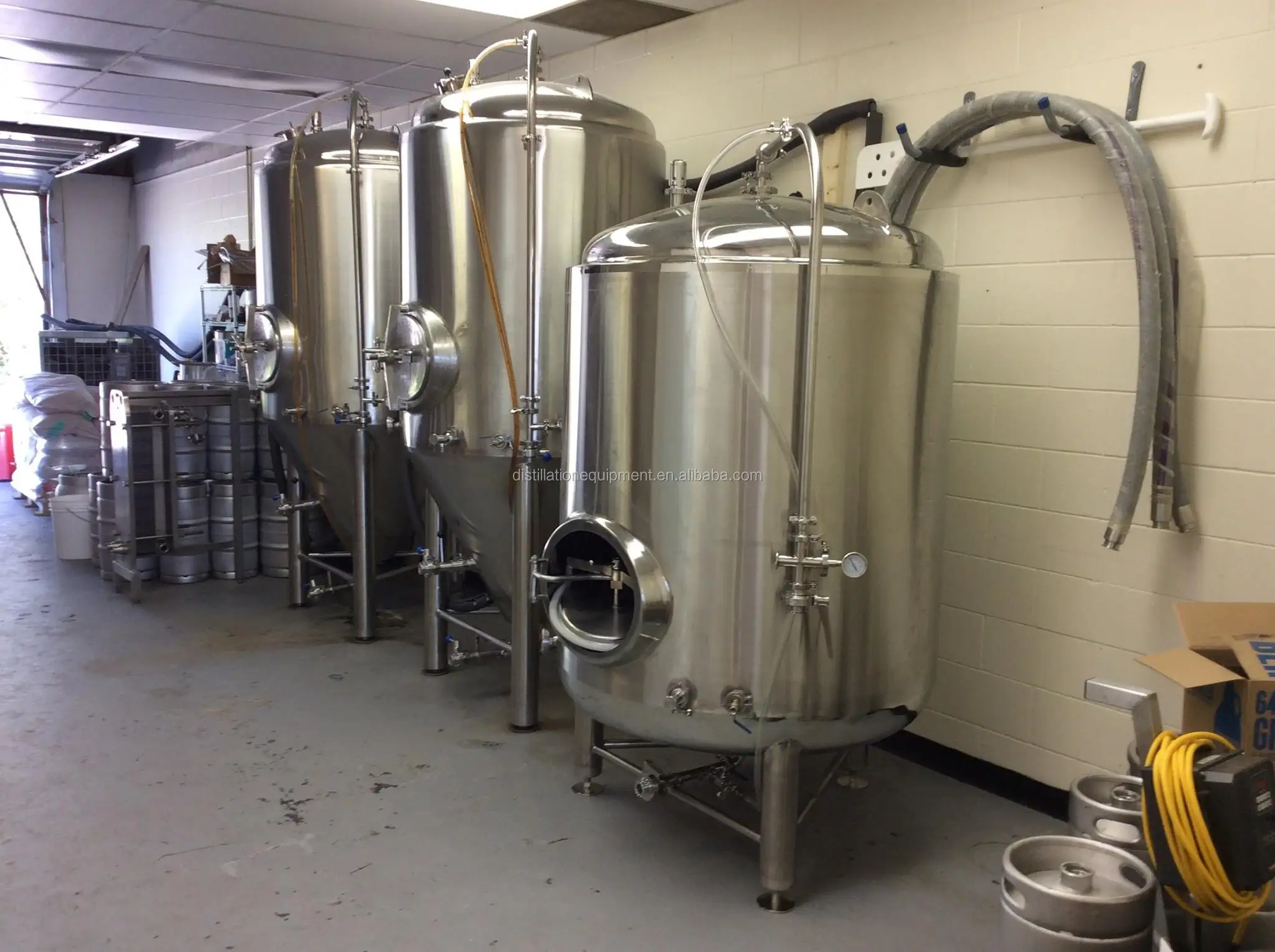 These stainless steel intermediate bulk containers are the most advanced liquid handling tank in the market today. With a patented one-piece top and superior draining bottom, these IBC containers set the industry standard for performance. Each tank meets or exceeds all Intermediate Bulk Container requirements. 1. Grade: SUS 304 or SUS316L 2. Size: 182/248/290/366/390/565/813gallon option 3. Certification: ISO9001, SGS, CE | 2 Vessel Brew House 5BBL/7BBL/10BBL/15BBL/20BBL/30BBL or customized • Mash Lauter Tun with grist hydrator • Kettle Whirlpool Tank with heating jacketed • Grant Tank • Stainless steel Platform • Plate Heat Exchanger • Sanitary Wort Pump x2; • Wort Oxygenator; • Semi-Auto Control Panel; • Interior surface to finish pickled and passivated • Exterior surface to brushed, #4 finish | |