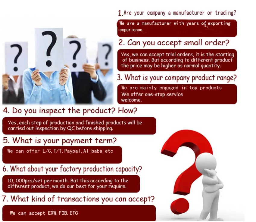 HECHENG GROUP(YIWU HUA CHENG TOYS CO.,LTD) are a industry and trade integrated enterprise, has nearly 20 years of production history, has a very professional OEM development team, we work for many large supermarkets, hamburger chain custom development product, like wal-mart, QUICK, DT, etc.