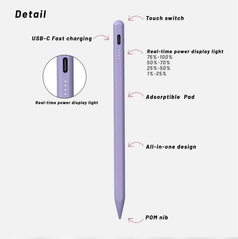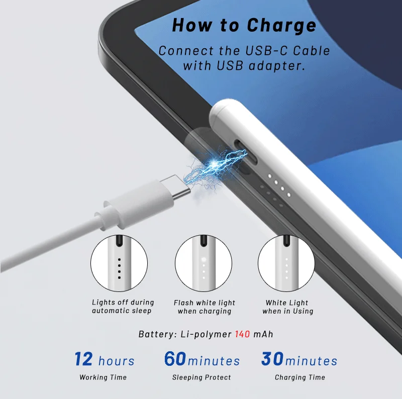 Product name | REXIAO 2021 new tilt function high precision 4 led light indicator metal palm rejection stylus touch pen pencil for tablet pad |