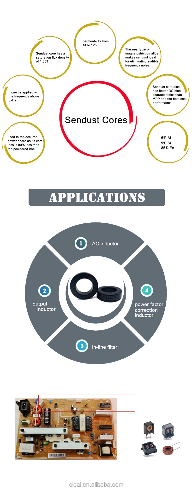 Besides Magnetic Alloy Powder Cores, our also provides Iron Powder Cores. For further information, please contact us.( E-mail:szkdm18@263.com and WeChat:cicai_10 )