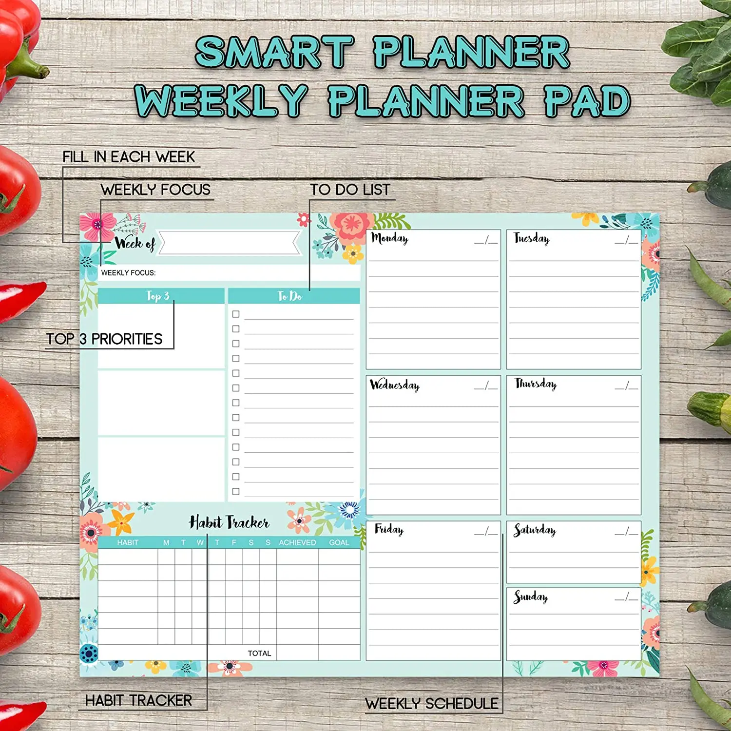 Product Name | Weekly Planner Pad to Do List Pad with 53 Sheets 10" x 8"Desk Planner & Weekly Planner with Habit Tracker Fridge Calendar |