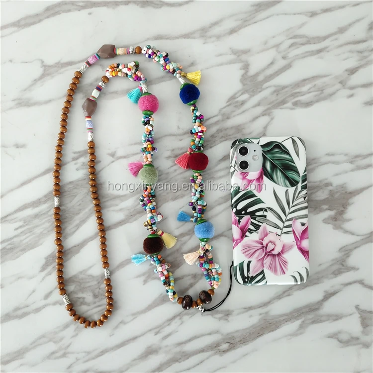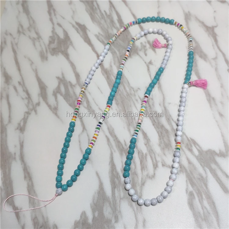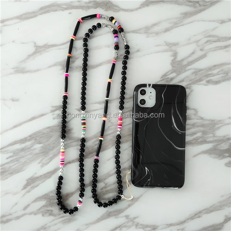 *Item Name | Fashion DIY Acrylic Pearl Bead Phone Cover Wrist Chain , Cute Girl Colorful Clay Beads Mobile Phone Case Strap Accessories |