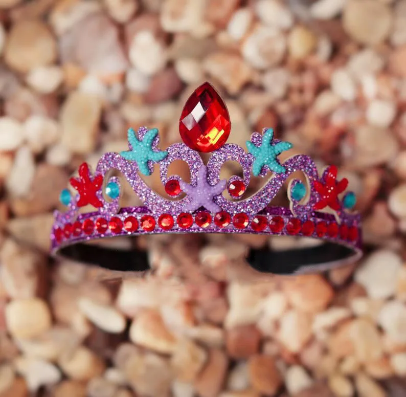 product name | Birthday Crowns for baby Girls Queen kids Tiara Elasti Headbands Hair hoop Hair Accessories Purple blue Starfish Crown Headwrap |