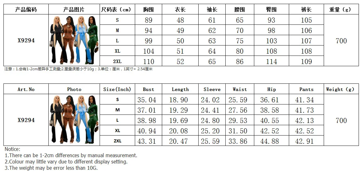 2021fall set women 2 Pcs Sweatsuit sexy velvet jacket and bell-bottoms pants Plus Size Two Piece fall clothing for women